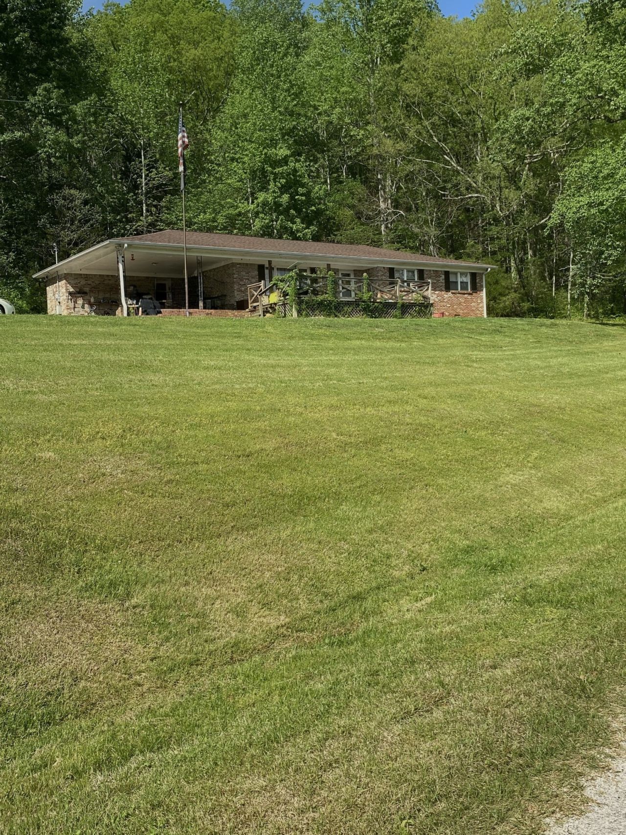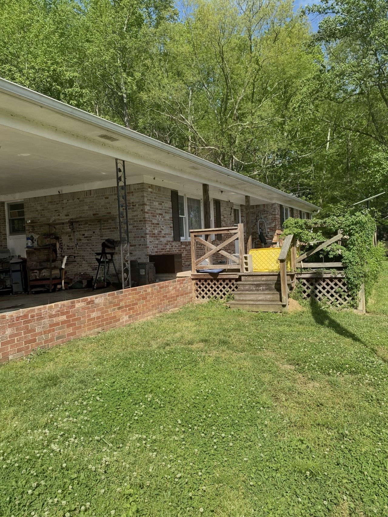 Priced to sell! This 3-bedroom brick home sits on 7 wooded acres, offering privacy and room to roam. Features include a carport, formal living room, and an open-concept kitchen, dining, and living area. The property also includes an outbuilding and a barn-perfect for storage, hobbies, or animals.
